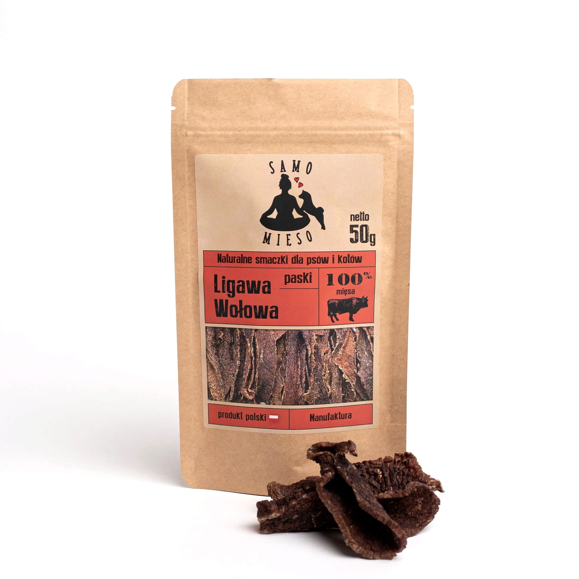Samo Mięso Całkowicie naturalne przysmaki dla psa i kota delikatnie suszone w niskich temperaturach, aby zachować wszystkie składniki odżywcze. Wyprodukowane z ręcznie krojonych, starannie wyselekcjonowanyc...